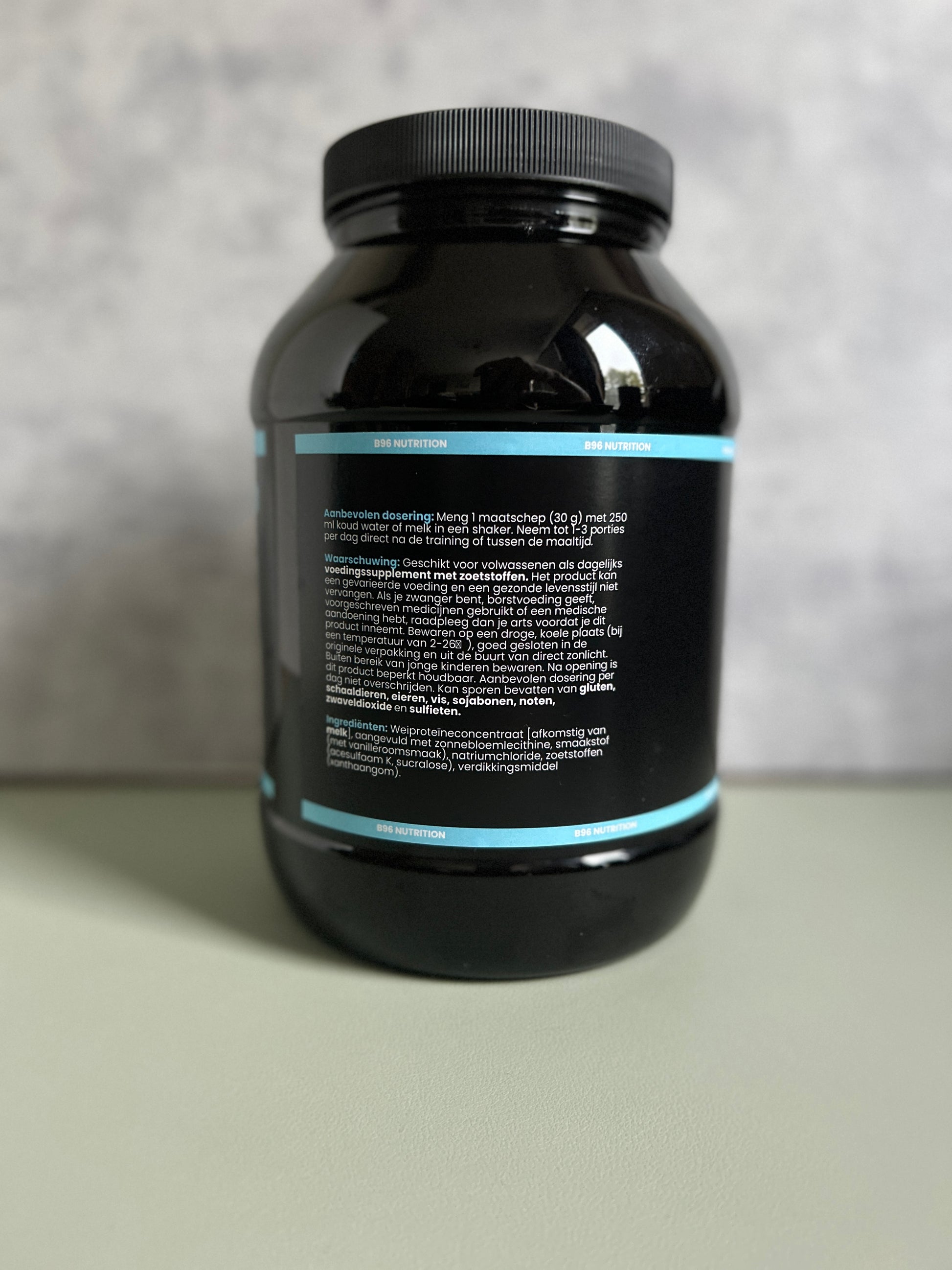 Ingrediënten: Weiproteineconcentraat [afkomstig van melk], aangevuld met zonnebloemlecithine, smaakstof (acaehgoh,juerdosa), varculengenie dofetolitn